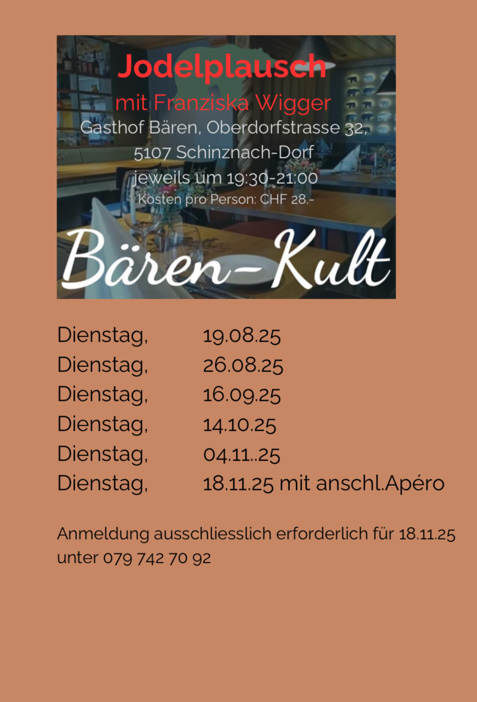 u.a. Franziska Wigger – Jodel/Sopran und Hanspeter Wigger – Alphorn, Büchel, Trompete